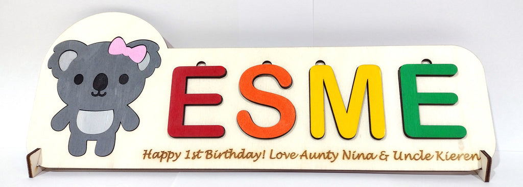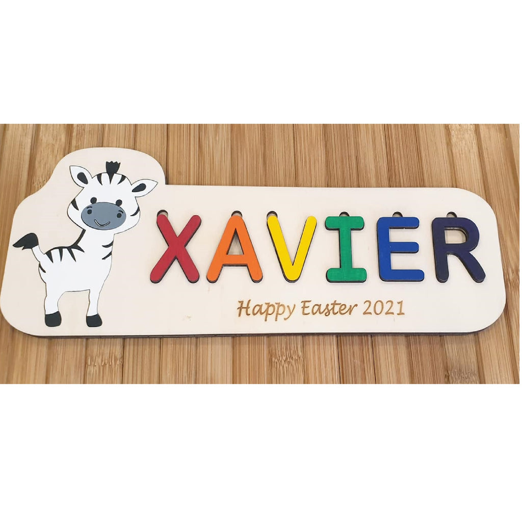 Name puzzles made of wood, fully personalised and with animal themes that we make sure a baby or a child would enjoy and create memories forever.