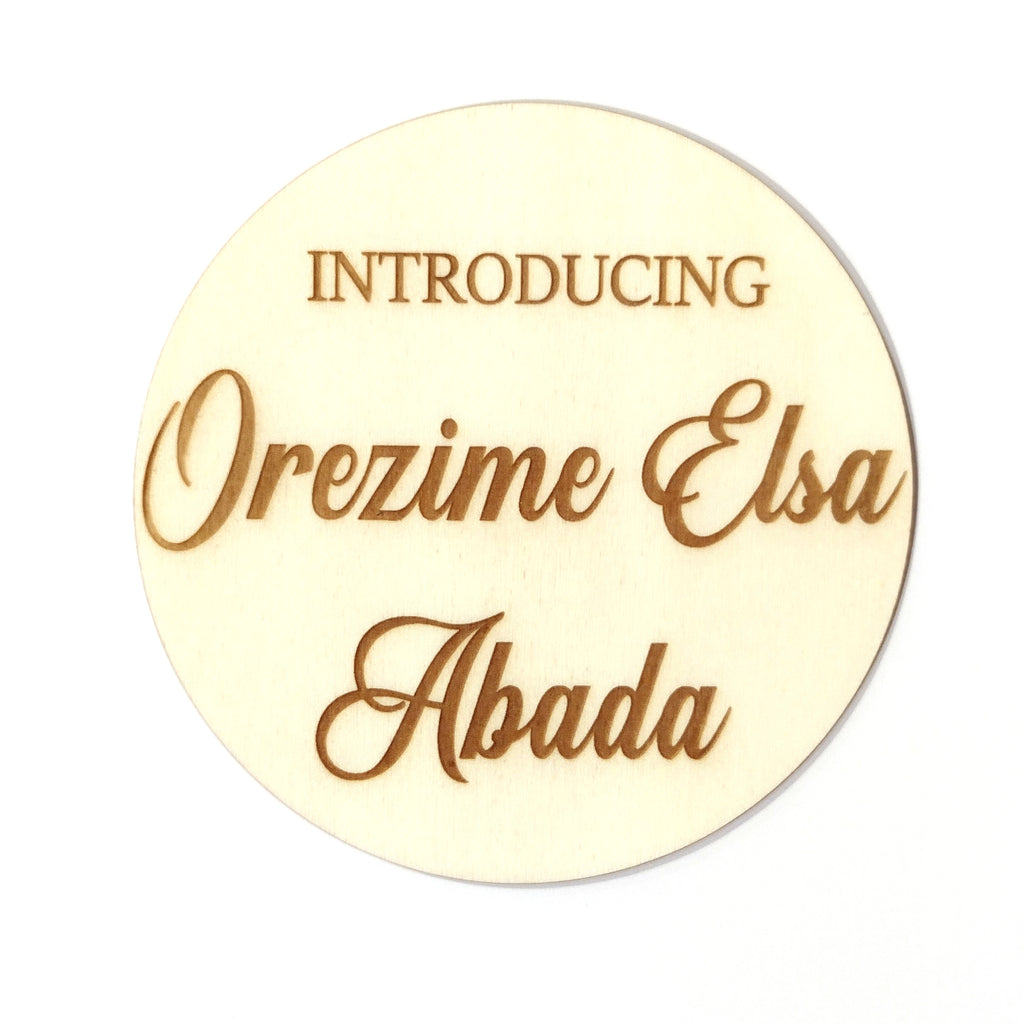 New Born Announcement / Introducing + Baby Name Disc Double Sided Thin Font