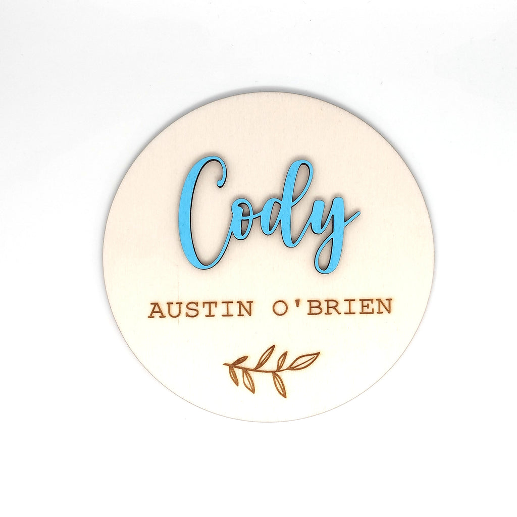 Personalised New Born Announcement / Introducing + Baby Name Disc Double Sided