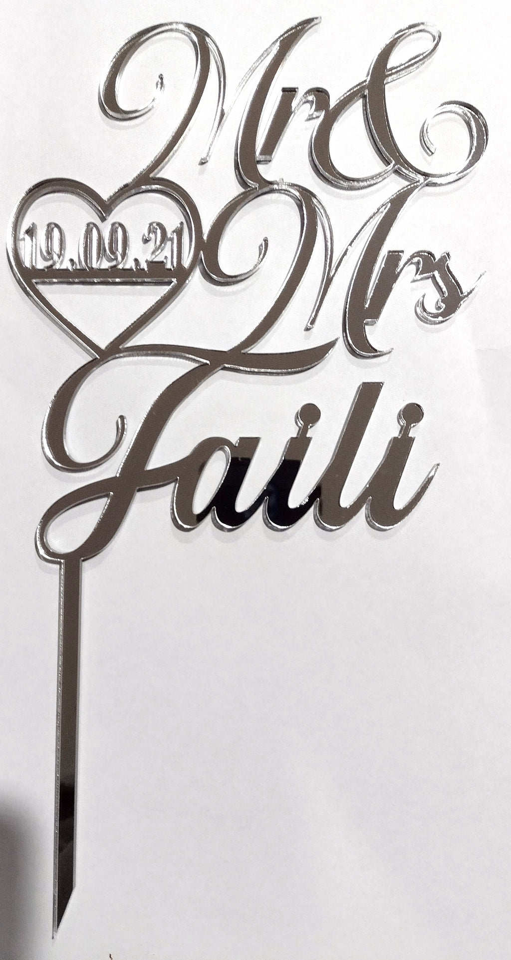 Mr Name and/& Mrs Name wit Date Cake Topper