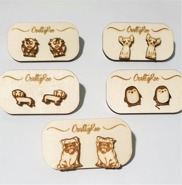 Cute Wooden Chihuahua Penguin Cow Dachshund / Sausage Dog Pug Earrings Animals Gift Made by Craftyroo