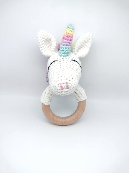 This handmade Unicorn teether/rattle is just perfect for your baby. It is super cute and brings a lot of learning for your kid's development.