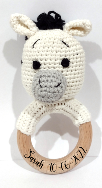 - Zebra Teether - Baby's name + Date of Birth engraved