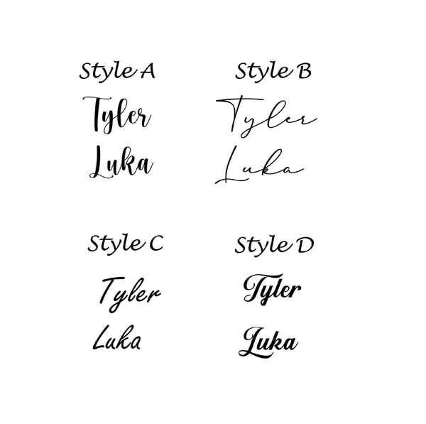 Please let us know the Name and Font Style you want in the message box at the checkout.