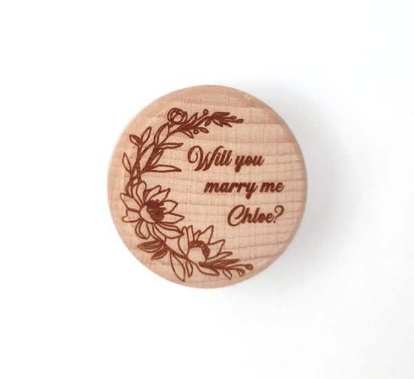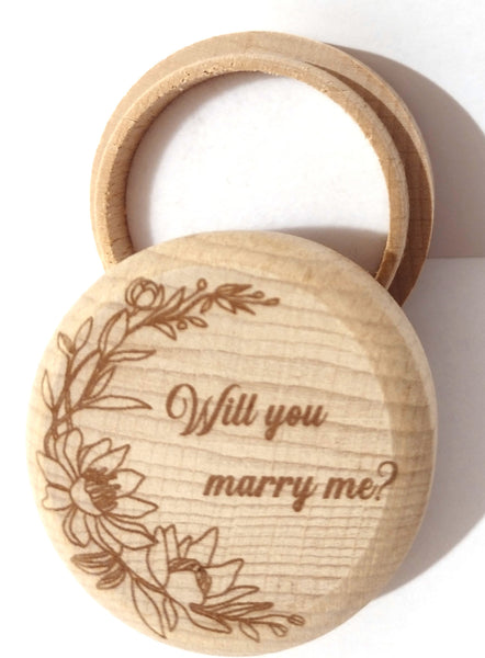 Perfect proposal gift, a beautiful handmade wooden ring box saying "will you marry me?. Isn't that the sweetest thing to do?